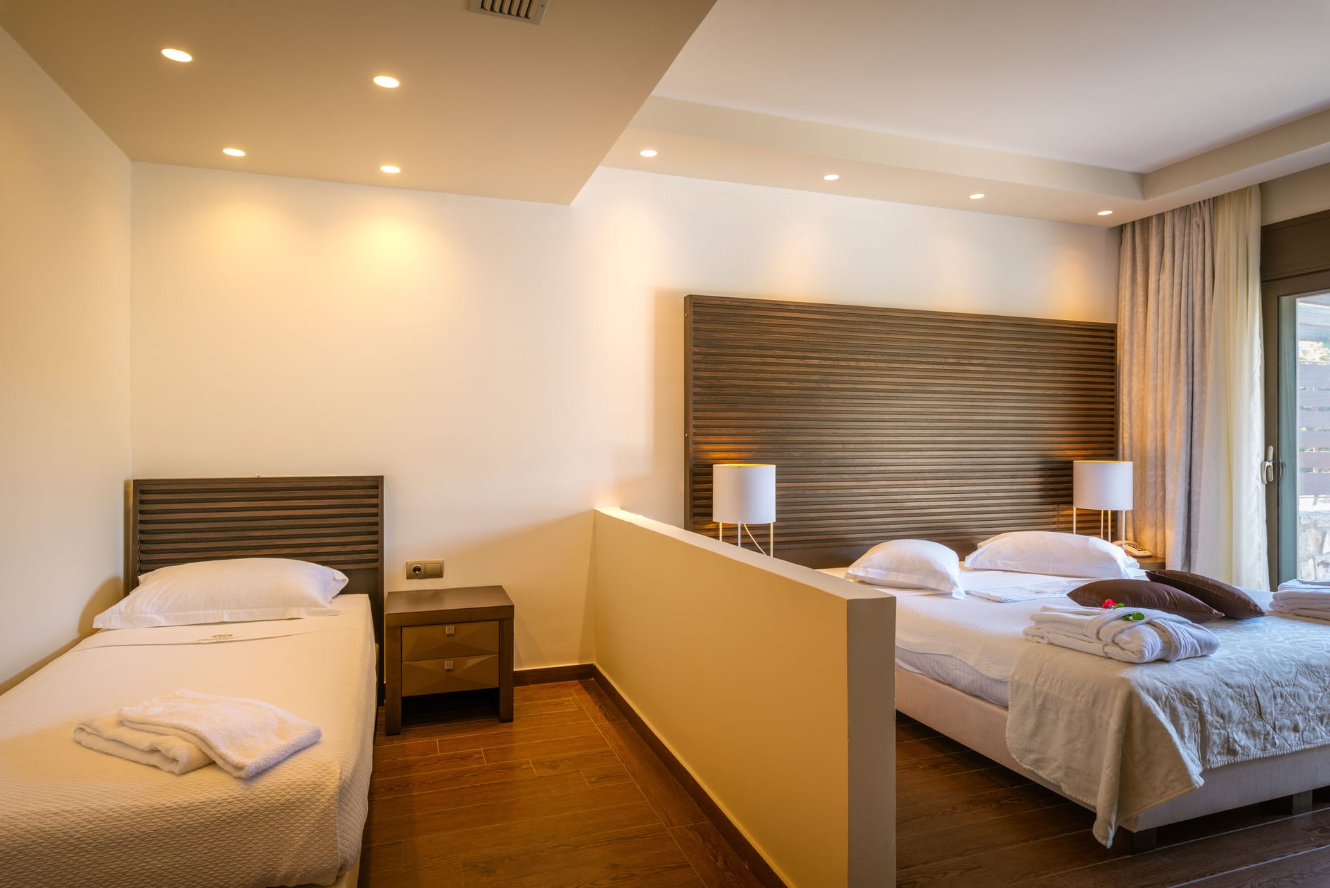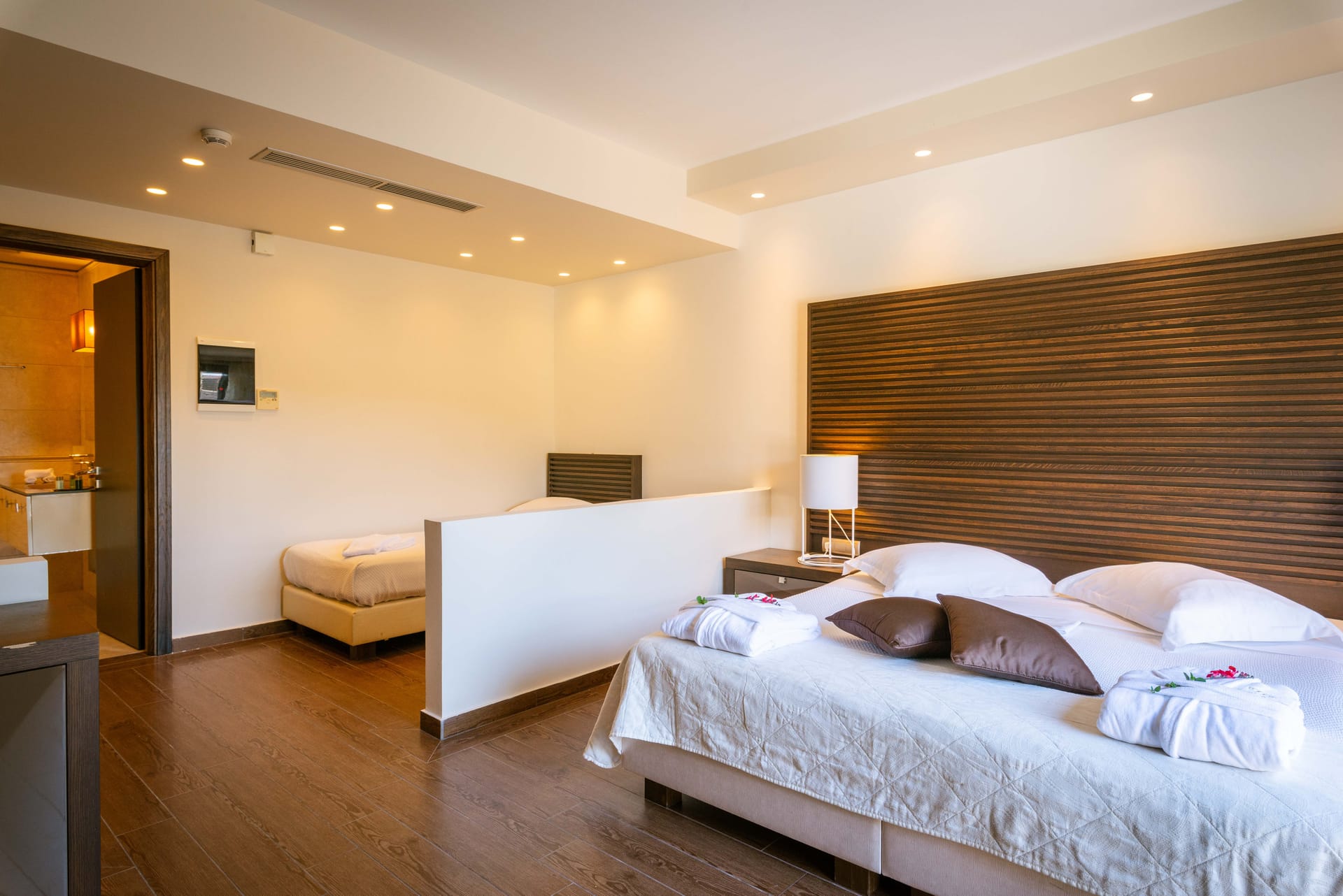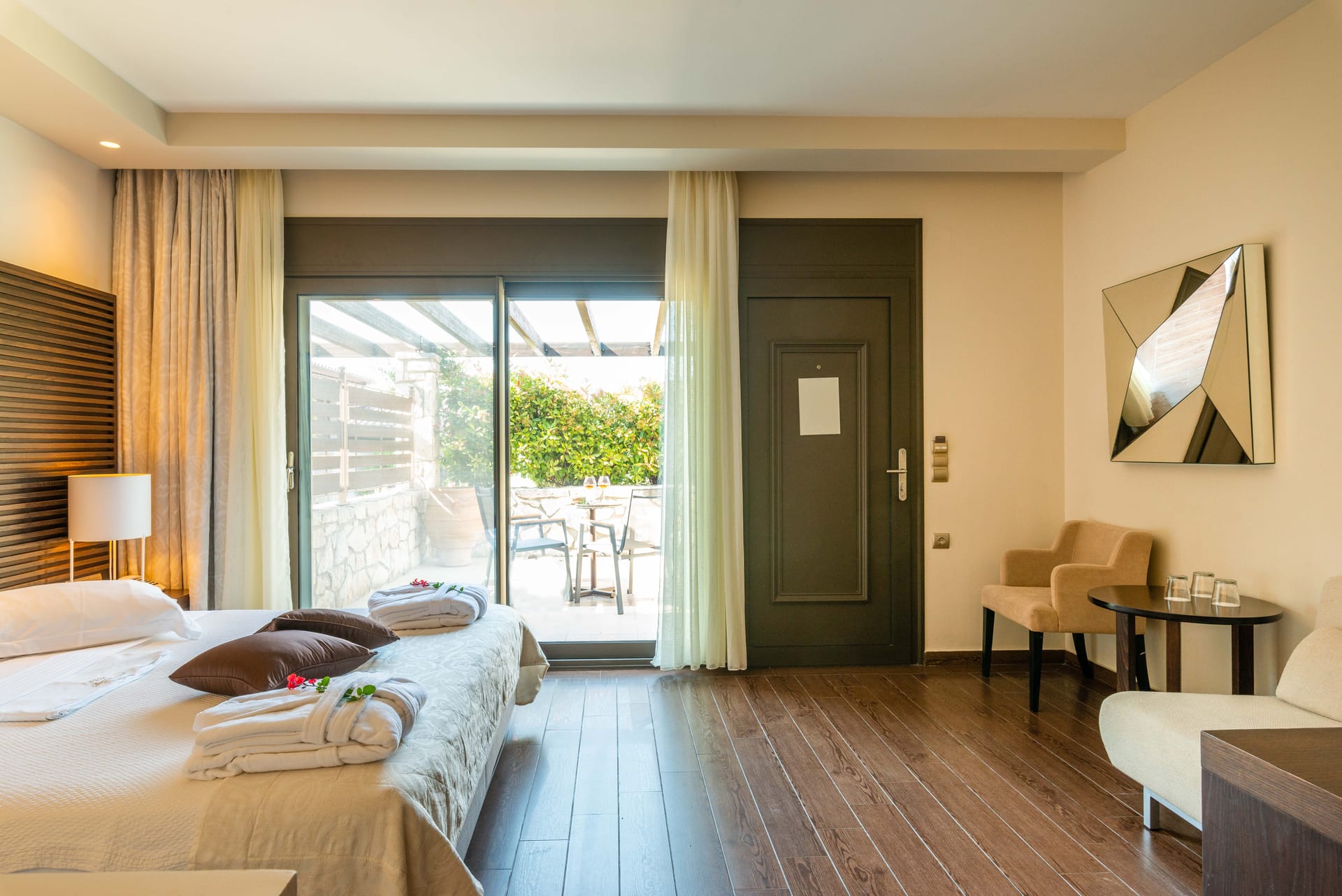 Nine Deluxe Junior Suites, 35sq.m., with single space and balcony or yard. View to Hotel's gardens and Epirus mountains. Located near to the Main Building, near Hotel entrance.