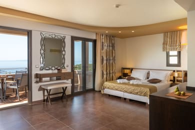 Four Deluxe Junior Suites with single space, 35 sq.m., and balcony with Ionian sea view. Located at the bungalows.